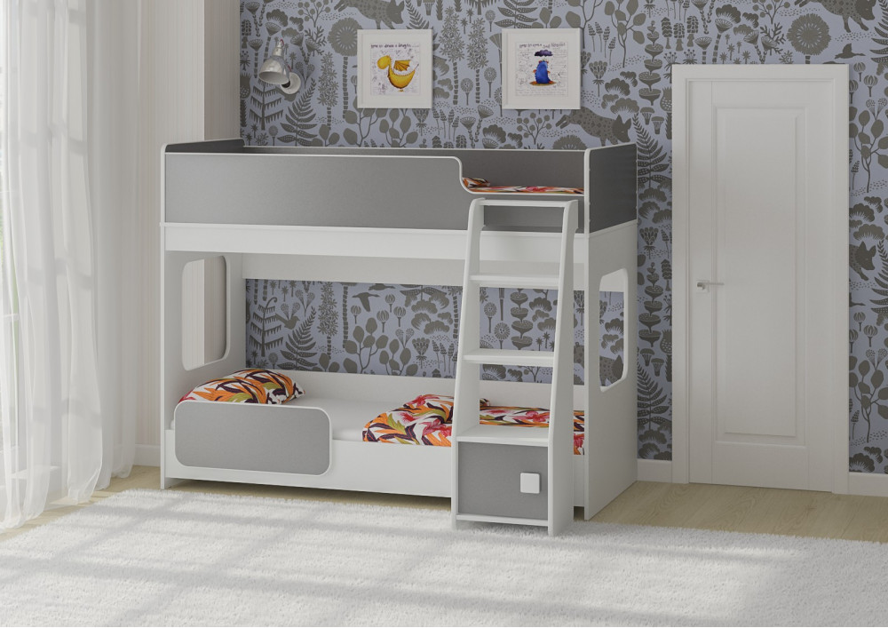 Классическая невысокая двухъярусная кровать с двумя параллельными спальными местами размером 1750х750.
